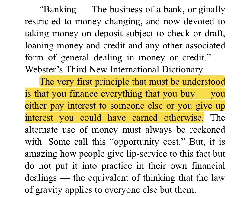Once you understand the statement above you can see the value in borrowing $1 if it costs you 5¢ per year in interest but returns 12¢ per year in value. Once you understand that, then you will start to devise a way to build an economic machine that can provide a return even on borrowed money.