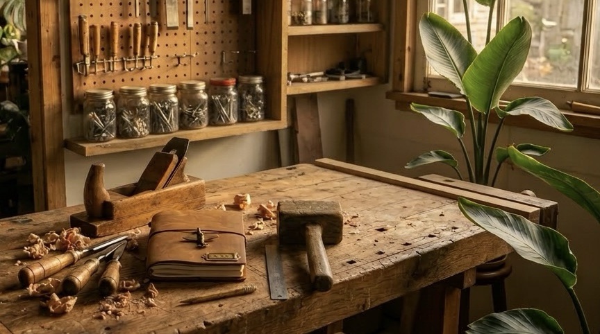 The leather notebook becomes your place to go when you have spare time. It should have pages for sketching, writing, and flaps for organizing ephemera. it should also have a calendar, planner, and to do list. You can also set up an e-reader or keep a book you’re reading with your notebook.